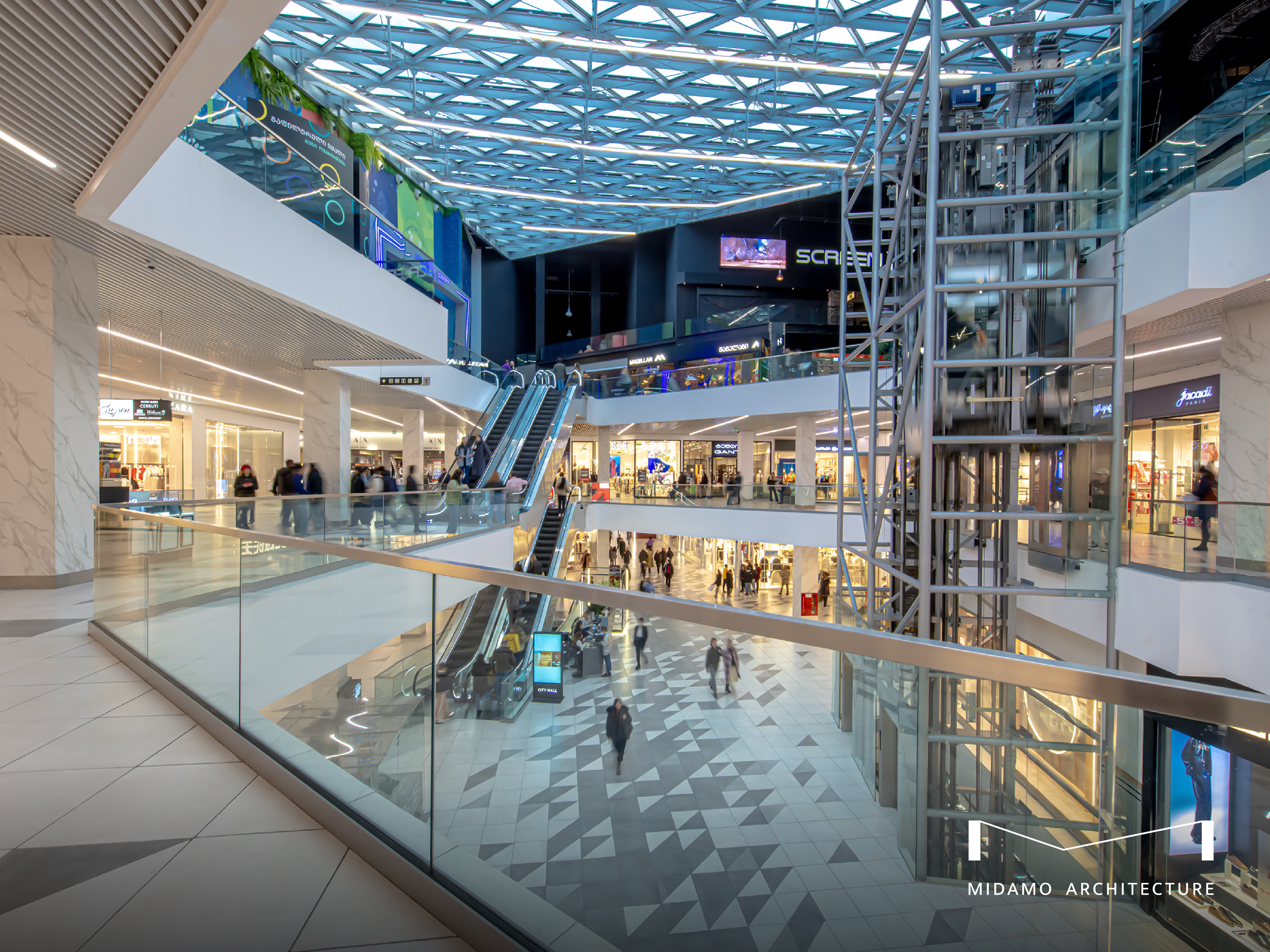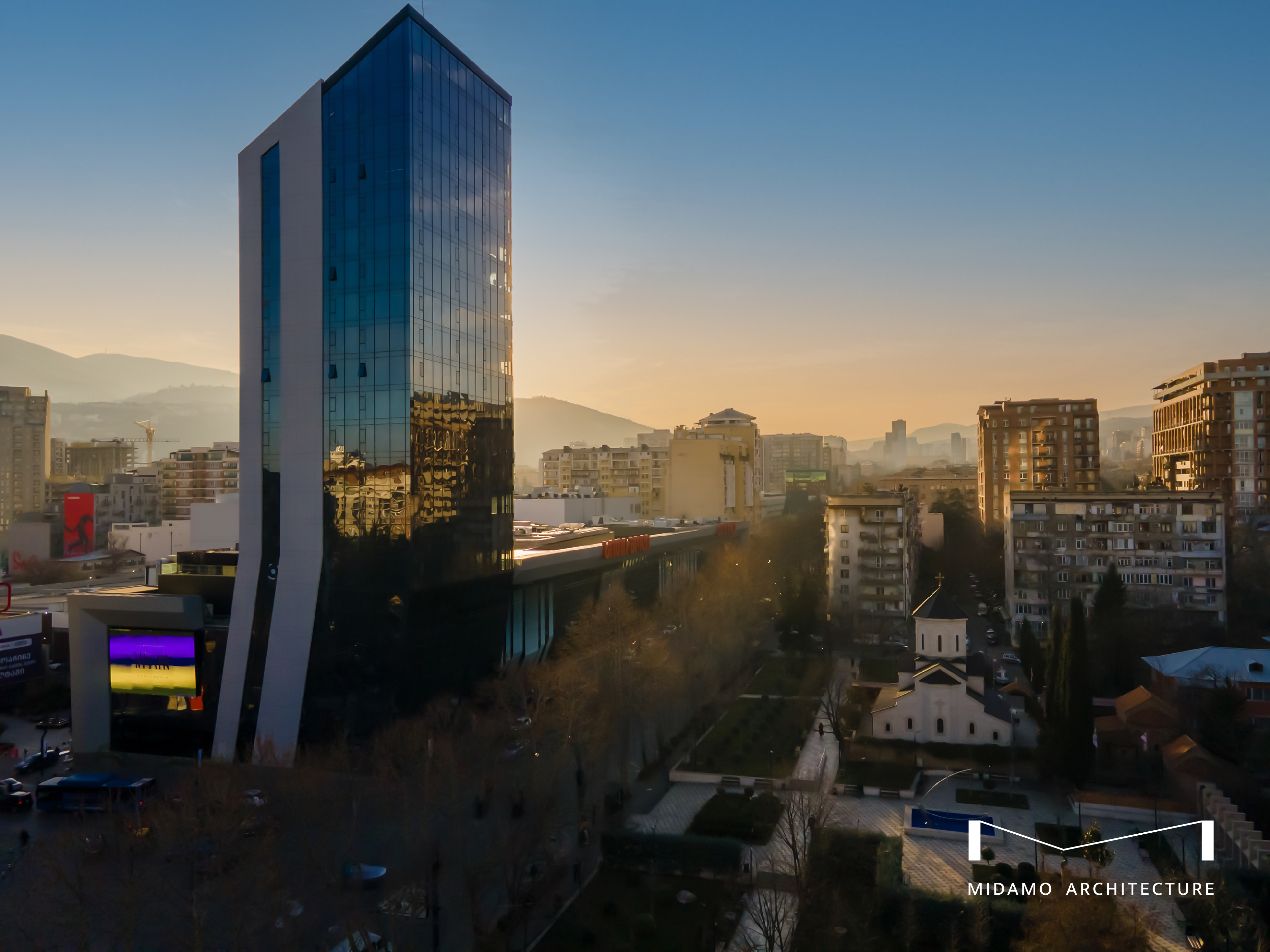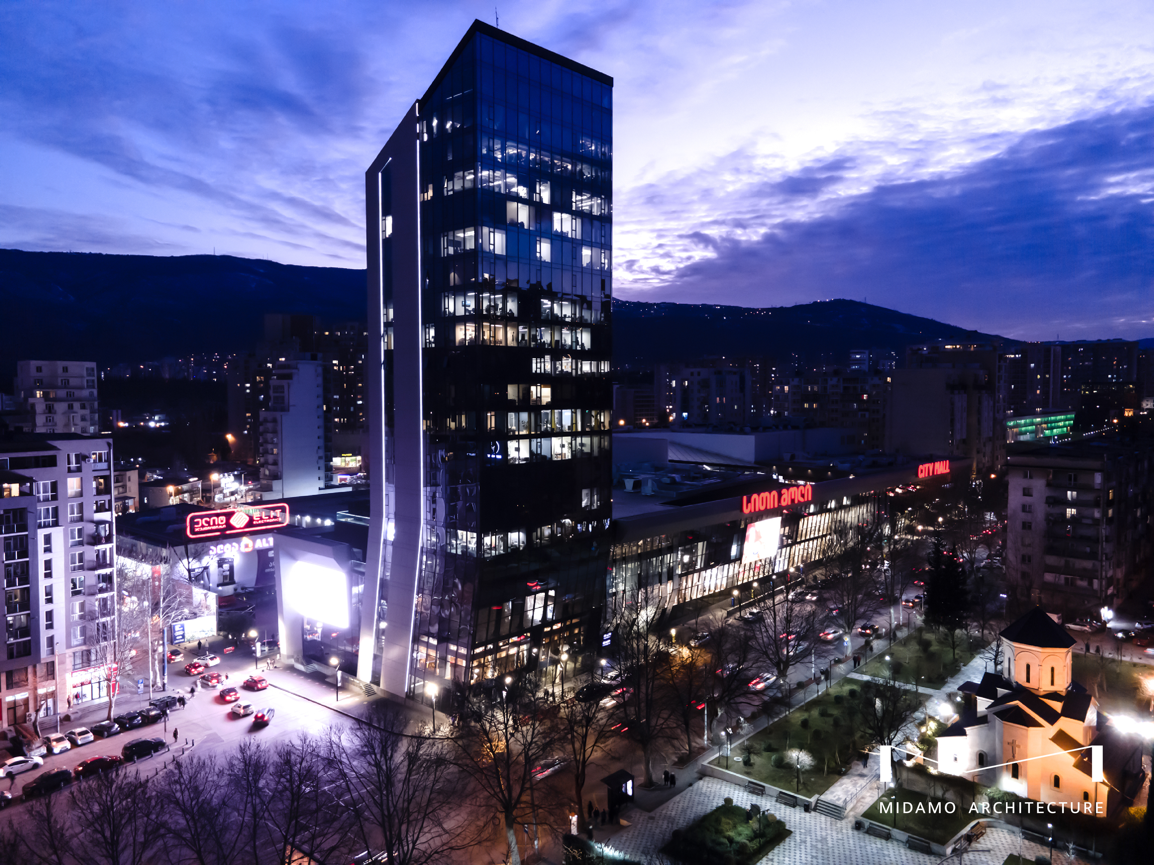 Architects - Shalva Lekiashvili, Giorgi Tsanatskenashvili, Giorgi Mukhiashvili, Nodar Tsabadze / Structural Engineering – Irakli Urushadze / Engineering project – DLG Group / Construction Company – BK Constructuon / Facade Structure – Capital Invest, Idea, Geo Glass / Project Management – CMC